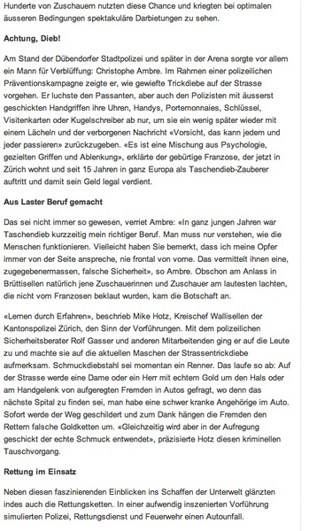 Taschendieb Zauberer Christophe Ambre ZürcherUnterläander Zeitung