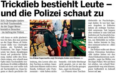 Taschendieb zauberer Christophe Ambre Zug Messe 20mn Zeitung